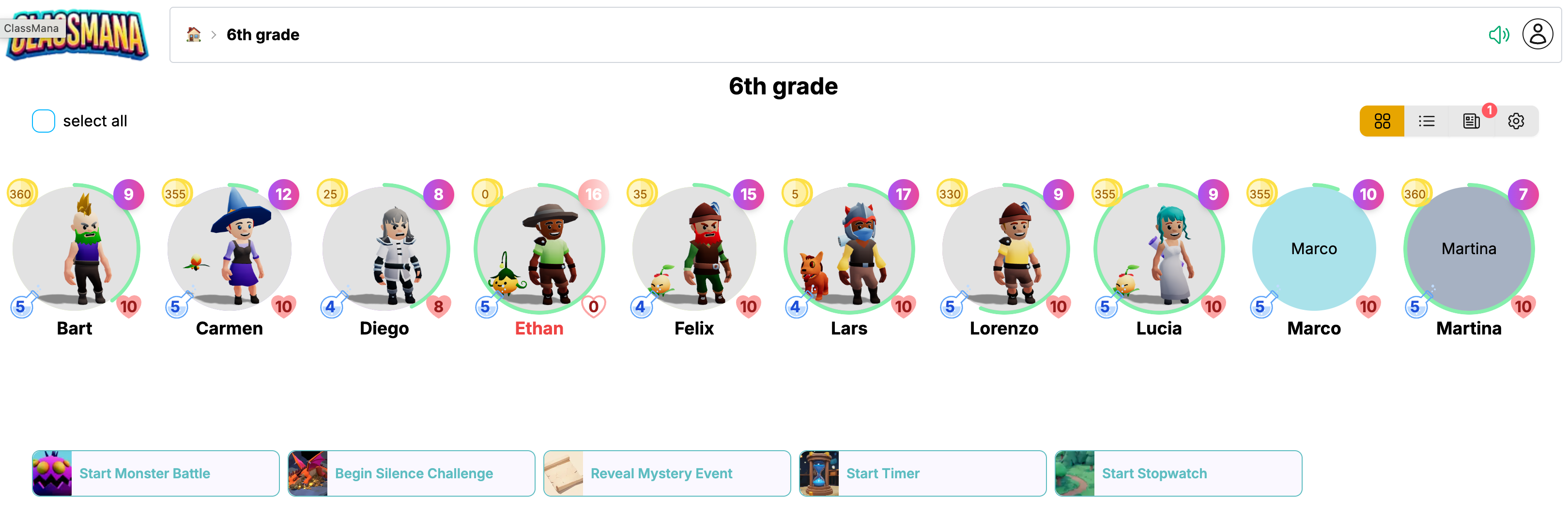 - Klases Piedzīvojumi - Savienojas ar jūsu klases sistēmu, lai apbalvotu skolēnus ar XP, zeltu, veselību un manu